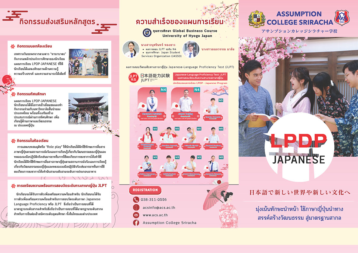 จัดให้มีการทดสอบวัดระดับความรู้ทางภาษาญี่ปุ่น เพื่อกระตุ้น ให้นักเรียนเห็นถึงประโยชน์ในการเรียนภาษาญี่ปุ่น รวมถึงเป็นการวัด ระดับความรู้ภาษาญี่ปุ่นของนักเรียน ตามมาตรฐานสากลเพื่อให้ นักเรียนสามารถรู้ระดับภาษาญี่ปุ่นของตนเอง เพื่อเป็นการเตรียม ความพร้อมในการเข้าศึกษาต่อ ระดับมหาวิทยาลัย ทั้งใน และต่างประเทศ