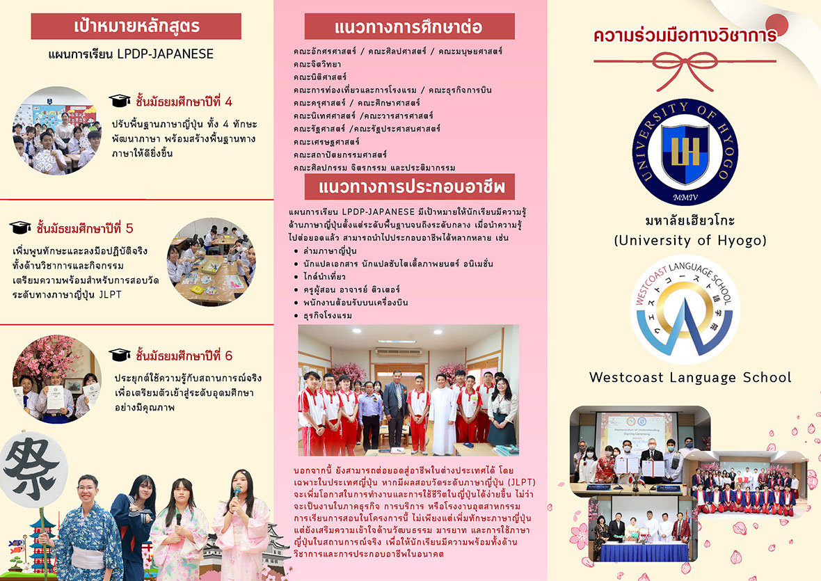 มีการทำบันทึกข้อตกลงความร่วมมือทางวิชาการ (MOU) กับสถาบันจากภายนอก เพื่อสนับสนุนการจัดการเรียนการสอน ทางวิชาการ การจัดกิจกรรมวัฒนธรรมของญี่ปุ่น ทั้งในและนอก ห้องเรียน ให้มีการพัฒนามากยิ่งขึ้น