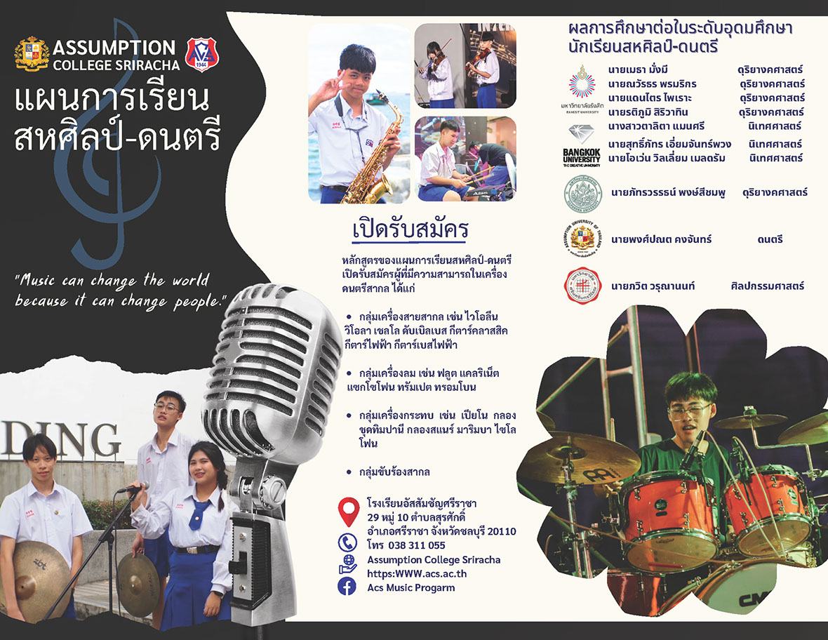 โรงเรียนอัสสัมชัญศรีราชา Assumption College Sriracha 29 M.10 Surasak Sriracha Thailand 20110 Tel : (+66)0-3831-1055-6, Fax.(+66)0-3832-3805 E-mail : acsinfo@acs.ac.th