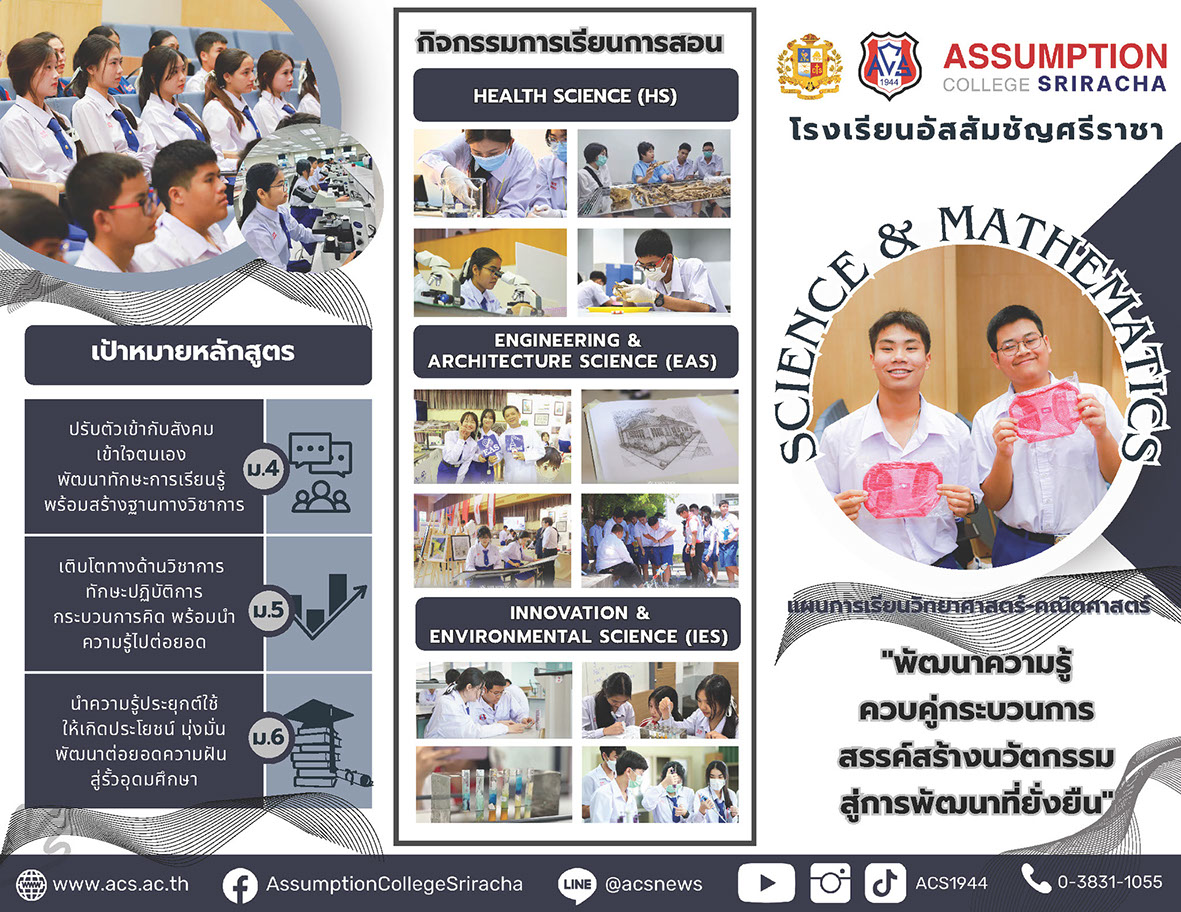 โรงเรียนอัสสัมชัญศรีราชา Assumption College Sriracha 29 M.10 Surasak Sriracha Thailand 20110 Tel : (+66)0-3831-1055-6, Fax.(+66)0-3832-3805 E-mail : acsinfo@acs.ac.th